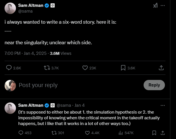 Hinting at superintelligence seems reckless in early 2025. Why is he skipping these steps. What do they know that we don’t ?