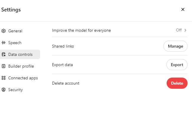 You go to Settings > Data Controls and you toggle “Improve the model for everyone” to "Off.”